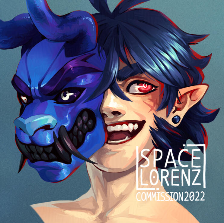 Commissioned artwork may be freely posted on the internet. It may not be used for profit or commercial purposes. It may not be used in any way for the generation of images by AI. The creator of the work (SpaceLorenz) must be credited whenever possible.